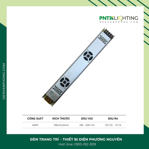 + Công suất 400W (33.3A) KT 370x53x22mm